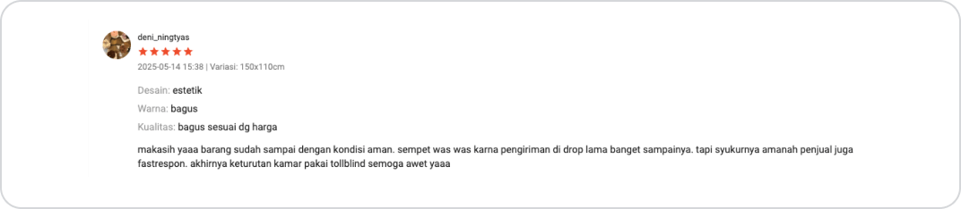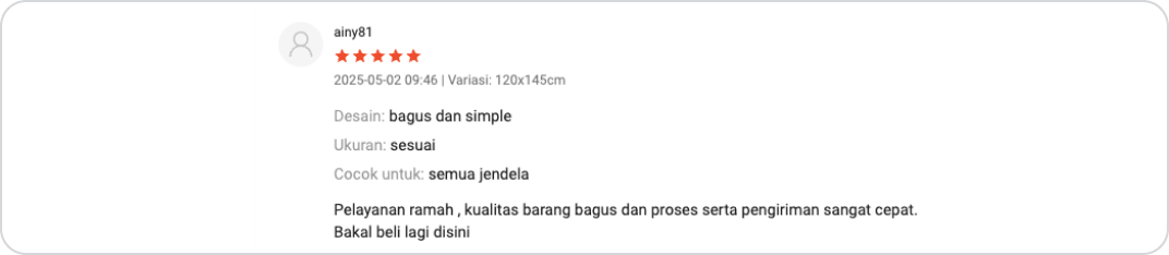 Blinds Factory dipercaya oleh ratusan keluarga karena bukan sekadar jual spesifikasi produk, tapi kami bantu KAMU wujudkan ruangan yang lebih nyaman dan stylish.